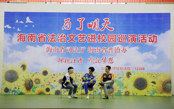 为进一步提升青少年的法治观念和思想道德建设,让更多青少年学生接受法治文化的熏陶,提升法律素养,9月25日上午,由省司法厅、省普治办主办,市普法办、市法制司法信访局、市教育局承办的2018年“为了明天——海南省法制进校园文艺”巡演活动在我院体艺馆举行。我院党委委员梁松及各系部负责人、全体2018级新生,以及市普治办、市法制司法信访局、市政法委、公、检、法、团市委等文昌市普治领导小组成员单位的负责领导和同志共同现场观看演出。