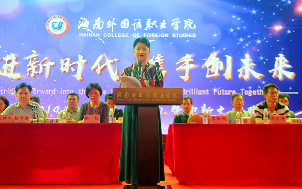 在庄严的国歌中,开学典礼拉开帷幕。李渝凤院长在典礼上致辞,她代表学院全体师生向新老师、新同学表示热烈的欢迎和诚挚的问候。她介绍了我院过去一年在校园规模、人才培养、对外交流合作、教学工作等方面取得的显著成绩,并对2018级新生提出三点要求:一是加强品德修养,锤炼高尚模型,希望同学们做人做事都要崇德修身,以德智体美劳全面发展为目标,以立志报国为己任,端正品德,锤炼品行;二是弘扬奋斗精神,逐梦璀璨青春,希望同学们以优秀的学长学姐们为榜样,与学院携手共进,开创学院更加辉煌的明天;三是坚定理想信念,谱写时代华章,希望同学们肩负起新时期的历史责任和使命担当,认真做好学业计划,志存高远,树立理想,服务国家“一带一路”建设,服务海南自由贸易试验区和中国特色自由贸易港建设,同时要有家国情怀,爱国、爱家乡、爱学校、爱师长、爱同学,会通中外、德能双馨,在浩瀚的知识海洋中汲取智慧的营养,不断充实自己的心灵,增强自己的自信,培养国际化视野,增强社会责任感,做国际化人才。