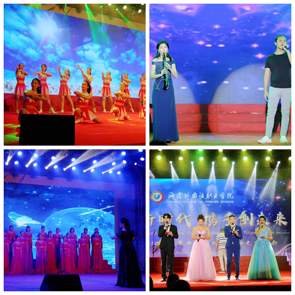 开学典礼结束后,迎新晚会正式拉开帷幕。首先,学院舞蹈团用极具默契的舞蹈动作,诉说出青春的热烈,追梦的无悔。学院合唱团踏着歌声,年轻与活力从舞台中央蔓延开来,挥洒着青春风采,追随着靓丽未来,《乘着歌声的翅膀》、《GO!文昌!》唱出自信与豁达。青春年少,一腔热血,一股干劲,用唯美的旋律歌颂青春万岁。由罗玉珠,姚家卓携手深情演绎的《can you feel the love to night》,悠扬婉转的长笛声与声音浑厚的男中音如花笑靥交相辉映,让全场师生如痴如醉。