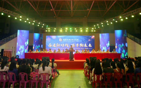 9月28日晚,我院在体艺馆举行2018-2019学年度开学典礼暨迎新文艺晚会。在家的院长李渝凤,党委副书记、纪委书记徐畅,副院长周运诗,副院长杨学前出席开学典礼。今年已经建校七十一周年的我院,走过了一甲子的风雨兼程,经历了岁月间的光阴流转,在2018年的秋天再次迎来了一批新同学。迎新晚会这场盛大的视听盛宴是给各位“千禧一代”萌新们的一份见面礼,精彩的节目如同璀璨的星河,引人入胜,掌声如潮。