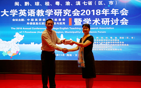 11月3日,闽、黔、琼、桂、粤、滇、渝七省(区、市)大学外语教学研究会2018年年会暨学术研讨会在文昌市召开。本次会议由闽、黔、琼、桂、粤、滇、渝七省(区、市)大学外语教学研究会理事会主办,海南省大学外语教学指导委员会、海南省外语职业教育教学指导委员会和我院承办,来自七省(区、市)80所高校的近300位专家及教师聚集一堂,共同探讨新时代信息化背景下英语教学改革的新途径。