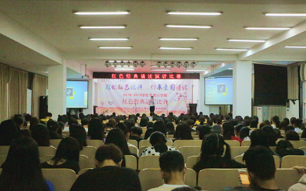传承爱国情怀”红色经典诵读比赛在图书馆多功能报告厅举行。15支队伍以高昂的热情和饱满的精神状态在比赛中进行诵读展示。