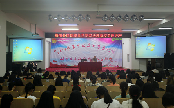 12月4日,正值第五个国家宪法日之际,我院邀请中国行为法学会金融法律研究会副会长兼秘书长、海南省法学会金融法治研究会会长、我院兼职法制副校长刘建来校,为广大同学做宪法精神解读。我院学生处负责人主持讲座,近500名师生聆听了讲座。