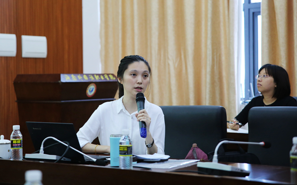 刘颖敏老师从组织设置规范、机构人员健全、工作制度完善、日常管理到位、作用发挥合格、基本保障有力这六个方面介绍了基层党组织标准化建设。她说道,组织设置要有基本的设置形式,要进行相应的组织设置调整;机构人员健全方面,要抓队伍建设;可以从党建工作责任落实制度、党委理论学习中心组学习制度、“三会一课”制度、组织生活会制度、民主生活会制度、民主评议党员制度、主题党日活动制度、党员学习教育制度、谈心谈话制度、发展党员制度、联系基层制度、党委公开制度这些方面去完善工作制度;日常管理如党费收缴使用、组织关系、党内激励关怀、工作台账规范等要到位;党组织和党员两方面的作用发挥要合格。最后,她还分享了海南大学外国语学院学生商务英语第二党支部标准化建设的做法和成绩。