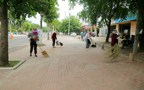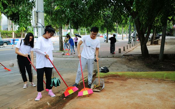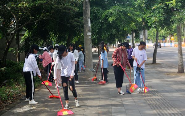我院同学们和清洁工人头顶着烈日、汗流浃背,不辞辛苦地沿着文昌市教育东路一路打扫、清理垃圾,认真地完成了自己的任务。在学院领导带领下、双创办精心组织下,以及大家的齐心协力下,教育东路整个路段的环境以及商铺门前卫生有了明显的改善。