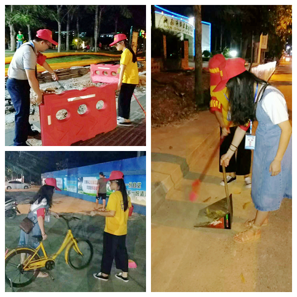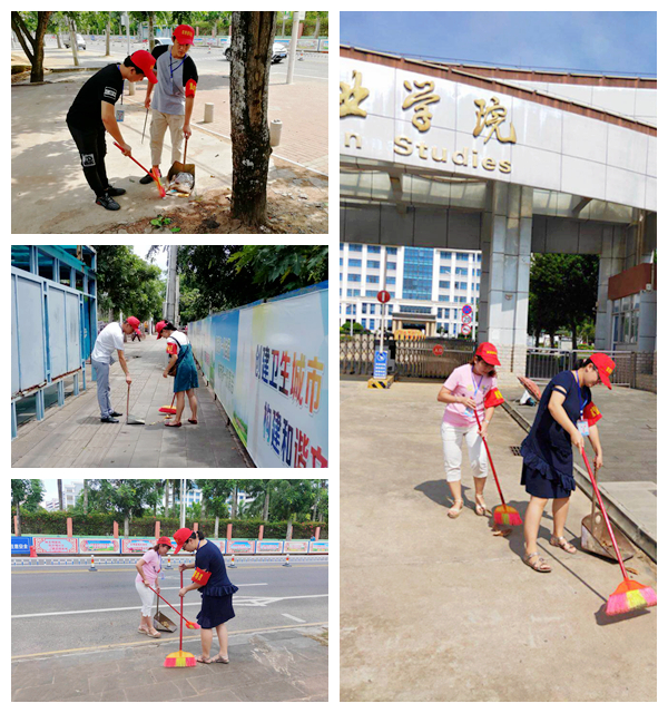 从白天到夜晚,无论烈日或者下雨,在整治环境卫生的最前线,都能看到我院师生的身影,在打扫过程中,老师学生们坚持不放过每个角落,不放过一个烟头、一片树叶、一个塑料袋,仔细认真地清理街道,与各商铺和住户进行耐心地沟通劝导。他们积极参与“双创”,为打造文昌美好环境贡献一份力。