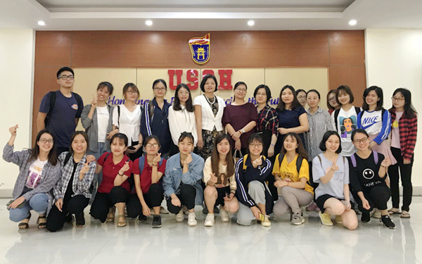 徐畅副书记一行看望了我院16级越南语专业学生印越玲和陈峻民。两名同学于2018年9月到越南河内国家大学所属社会科学与人文科学大学留学。徐畅副书记代表学院对他们表示问候和关心,亲切地询问他们在越南的学习和生活情况。学生们表示很高兴能来越南留学,这是提高越南语水平的好机会。在这里,学校根据学生的水平分班教学,老师们的教学水平高。他们现在基本能跟得上教学进度,生活上也能习惯,虽然在国外留学会遇到许多困难,但他们表示都能克服。最后,徐畅副书记对他们表达了殷切的期望,希望他们继续努力学习,学成归来后能投身于海南发展建设,为国家“一带一路”建设贡献自己的一份力量。