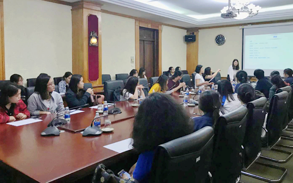 在越南河内国家大学所属社会科学与人文科学大学,徐畅副书记一行受到该校Pham Quang Minh校长、语言学系Trinh Cam Lam主任、国际合作处副主任Nguyen Minh Nguyet、东方学系Nguyen Thi Ngoc Hoa主任以及相关学校领导和专家的热情接待。