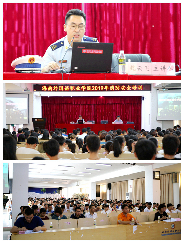 6月25日下午,我院在图书馆多功能报告厅和2号教学楼先后举行消防安全常识培训和火灾应急疏散演练。文昌市消防救援支队魏云飞参谋为广大师生做消防安全常识培训,我院杨学前副院长主持培训活动,来自各部门、各系部的师生代表逾五百人参加培训。