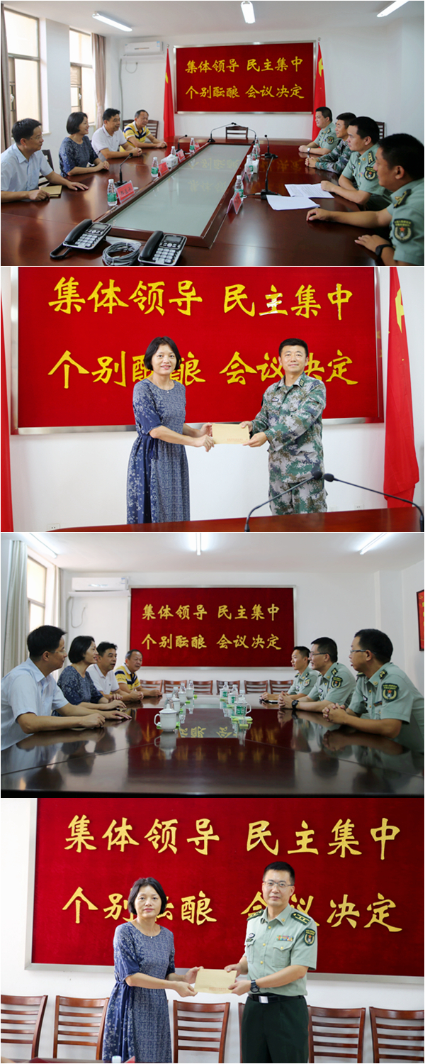 7月30日下午,临近“八一”建军节之际,我院党委副书记、纪委书记徐畅率领党委委员、党办主任梁松,院办副主任邢益承、学生处副处长前往驻文昌航天发射基地某部队,代表学院向部队官兵送上节日的问候和祝福,受到了部队领导的热情接待。
