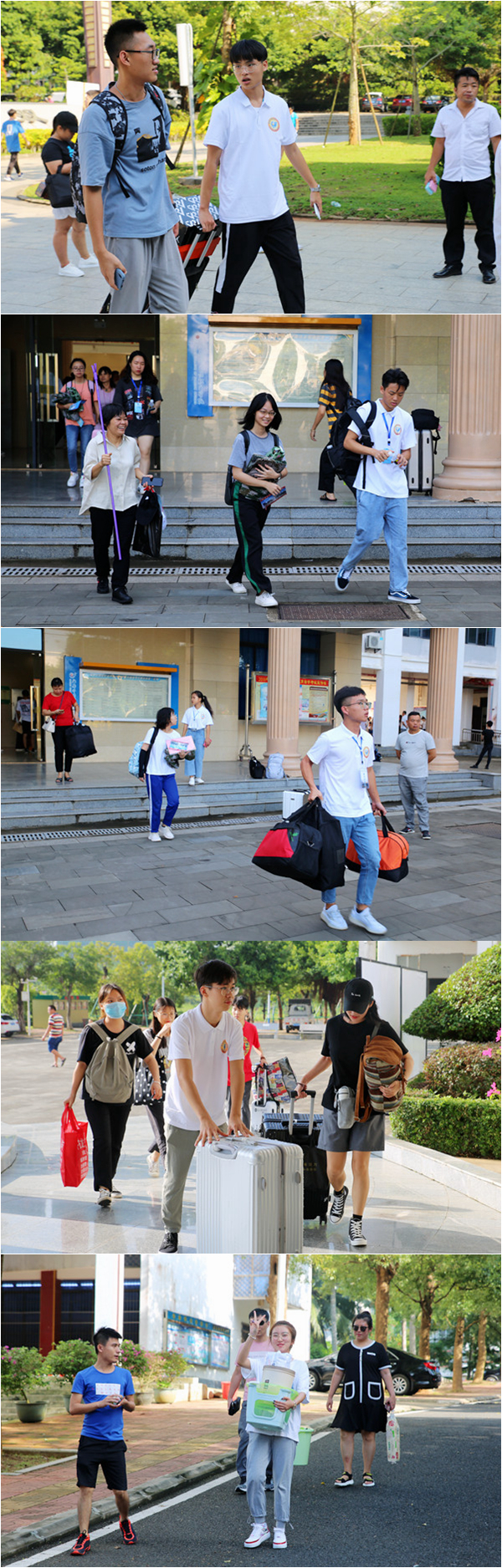 随着学院迎新工作正式启动,一个个忙碌身影渐渐盈满校园,他们或提着行李,或热心的解答问题,或为新人指引道路,他们热情开朗,为初入大学校园的新生、家长们热情服务,展示青春洋溢的绚丽笑颜。有关部门、各系部老师们和学生志愿者们认真地值守在自己的岗位上,各司其职,用自己的阳光面貌,用一句句温暖的问候,欢迎着来自祖国四海八方的莘莘学子们,正式加入到海外院这个满怀温情的大家庭中。