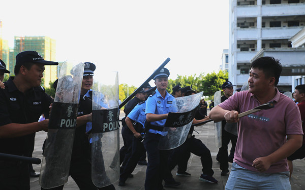 为进一步加强校园安全,提高保安人员以及学生的安全防范意识,提高师生对恐怖事件的合理处置、自护自救及有效逃生避险的能力,最大限度地减少因突发恐怖暴力事件对师生造成的人员伤害,营造“平安校园”氛围,9月12日下午,我院在文昌市城南派出所的协作下,在东门举行了一场反恐演练活动。学院办公室负责人和有关人员,保卫科全体人员,以及各系部学生代表参加活动。
