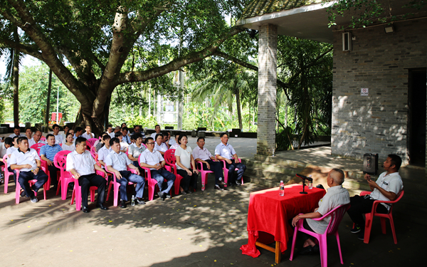 期间,我院还特别邀请了抗战时期少年团成员王进良同志为大家开展革命传统专题讲座,老革命家向大家娓娓道来当年的革命故事并在现场用海南话演唱了抗战歌谣:“天是我们的天,地是我们的地,我们的天地绝不能让给日本鬼,快快团结起参加革命队!”