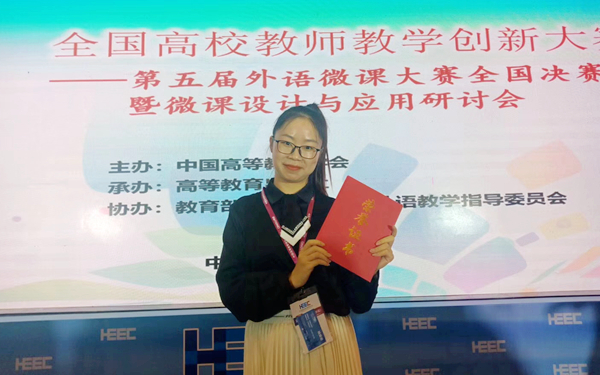 11月1日至3日,由中国高等教育学会主办、高等教育出版社承办、教育部高等教育学校大学外语教学指导委员会协办的全国高校教师教学创新大赛——第五届外语微课大赛全国总决赛在南京举行。我院英语系万雨婷老师代表我省参赛,并在大赛中表现出色,以总分排名并列第二的成绩斩获全国总决赛一等奖,创造了我院在该赛事上的历史最好成绩,也为海南省赢得了在该赛事上的第二个全国一等奖,为我院及我省赢得了荣誉。