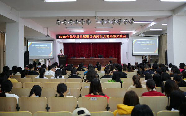 12月3日下午,我院在图书馆多功能报告厅召开2019年教学成果展暨各类师生竞赛经验交流会。学院党委书记曾锋、院长李渝凤、副院长杨学前出席交流会。学院教学指导委员会委员、教学督导委员会委员、各系主任、教研室主任、副高以上教师及各系部近300名学生代表参加此次交流会。教务处负责人林勇主持会议。