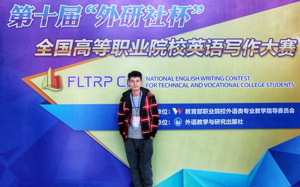 12月7日,由教育部职业院校外语类专业教学指导委员会指导、外语教学与研究出版社主办的第十届“外研社杯”全国高等职业院校英语写作大赛在北京举行。我院英语系应用英语专业18翻译3班杨强同学代表我省参赛,并在大赛中表现出色,以排名第二的成绩斩获全国总决赛专业组一等奖,创造了我省参加此赛项历史的最好成绩,为我院及我省高职院校赢得了荣誉。