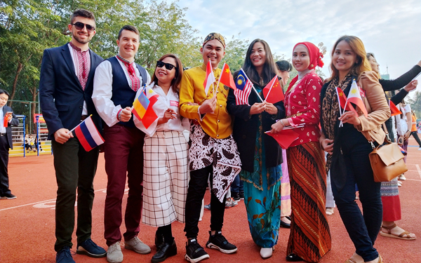 作为一所外语类高校,我院举办的运动会国际化氛围浓厚。来自不同国家的外籍教授和留学生与大家同欢同庆,尽展风采。
