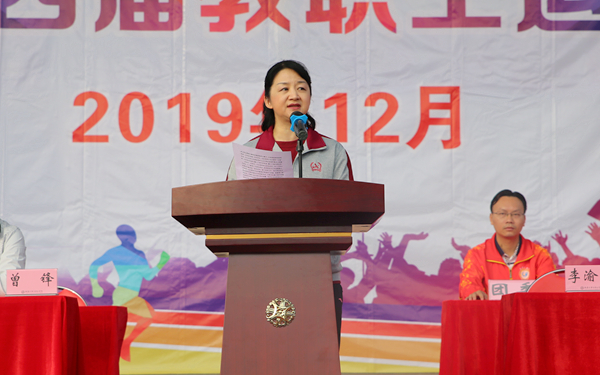 李渝凤院长致开幕词。她指出,我院在不断提高教育教学质量的同时,也积极拓展素质教育,发展体育事业。近年来,我院师生在排球、羽毛球、篮球、乒乓球、足球省级大赛中屡创佳绩,激发了海外院学子们奋勇拼搏、追求卓越的精神,让同学们在紧张的学习当中得到身体上和意志上的锻炼,让体育运动真正的融入我们的生活。同时,她希望,全体参赛运动员,在本届运动会中赛出风格、赛出佳绩、赛出友谊、充分展现我们海外院人顽强拼搏、勇于挑战的精神风采,大力弘扬“更高、更快、更强”的奥林匹克精神,以奋斗者的姿态、抢抓时代机遇、团结拼搏,以创建应用型本科高校为奋斗目标,为国家“一带一路”倡议以及海南省自贸区(港)建设,积极主动作为,共同建设好发展好我们的海外院。