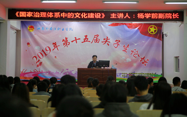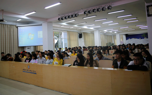 杨学前副院长通过一些鲜活的例子,介绍了私有制与公有制的区别,分享了他所到过一些国家的见闻和文化体验,让在场的同学感受不同国家之间的文化差异和国家的发展水平,让同学们更加庆幸自己生长在这和平、美丽、安全、富强、文明的国家,也更加坚定了“四个自信”。