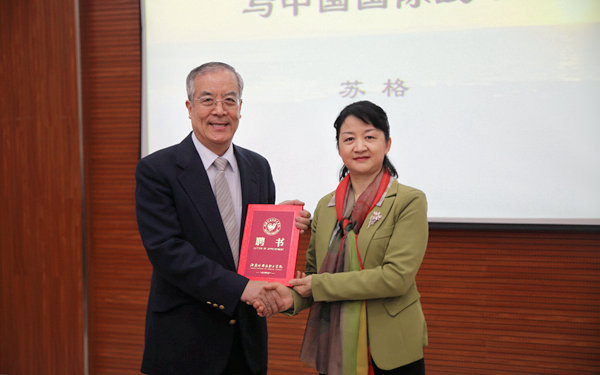 杨学前副院长首先向与会人员介绍了苏格教授并对苏格教授莅临我院讲学表示热烈的欢迎。随后,李渝凤院长代表学院向苏格教授颁发了我院客座教授聘书。
