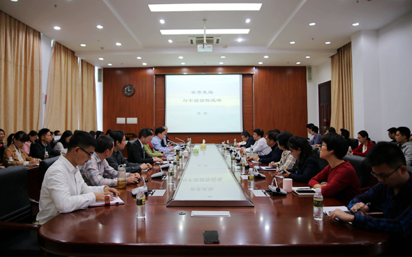12月20日下午,应我院特邀,中国太平洋经济合作全国委员会会长,中国太平洋经合理事会联席主席,中国国际问题研究院前院长、党委书记苏格教授莅临我院,在我院综合楼七楼第一会议室作了题为“世界变局与中国外交战略”的学术讲座。我院李渝凤院长、杨学前副院长会见苏格会长并出席讲座。我院部分中层干部、国际交流中心全体人员、各系部外事秘书、外教助理、教师代表等五十余人到现场聆听讲座。讲座由杨学前副院长主持。