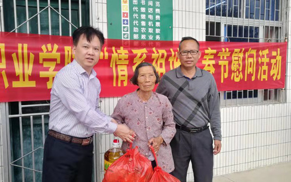 “情系祖坡,爱暖心窝”,逢新春佳节到来之际,我院党政领导们和师生们情系帮扶点祖坡村的贫困户和扶贫干部。1月21日下午,我院副院长杨学前、工会主席黄守剑、学院办公室副主任符仲开一行代表我院到帮扶点祖坡村开展春节慰问活动,给祖坡村的特困户、低保户送来温暖关爱,并鼓励他们自立自强奔小康。
