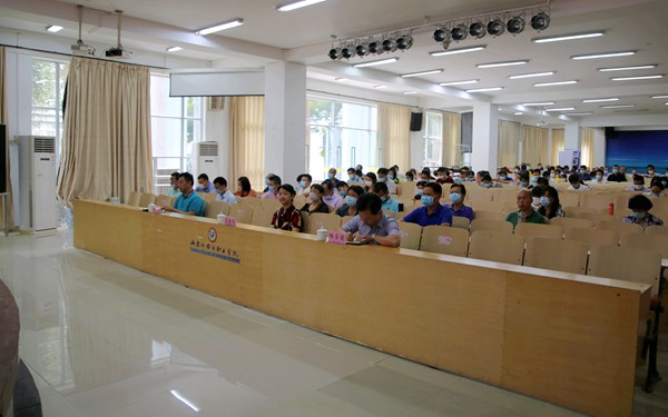 为不断加强教职工防疫知识技能普及宣传,全力保障2020年春季学期开学工作平稳有序进行,4月30日下午,我院在图书馆多功能报告厅开展教职工防疫知识专题培训,邀请文昌市疾控中心副主任技师、防控专家邝正文来校讲授疫情防控知识。在家的学院院长李渝凤、副院长杨学前、党委委员梁松,与各部门、各系部主要负责人,有关职能部门工作人员,全体学工人员等一同参加培训。杨学前副院长主持培训会。