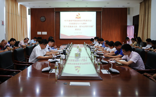 为庆祝中国共产党成立99周年,传承红色基因,认真贯彻落实中央、省委关于海南自贸港建设的重大决策部署,激励和引导广大师生在海南自贸港建设中担当作为、建功立业,7月1日下午,我院在综合楼7楼第一会议室召开“我为党旗添光彩,我为自贸作贡献”座谈会。学院副院长杨学前、纪委书记黄培怡、党委委员梁松,以及中层党员干部、师生党员代表等参加座谈会。座谈会由党委委员梁松主持。