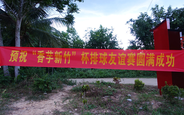 赛场周围拉满横幅,营造了浓郁的气氛,也展示了海外院与祖坡村的情谊。