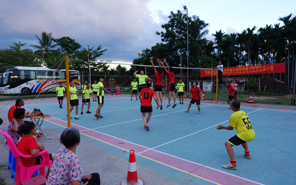 7月17日下午,我院男子教职工排球队队员来到学院定点扶贫村——定安县新竹镇祖坡村,与当地村民开展了一场别开生面的排球友谊比赛。
