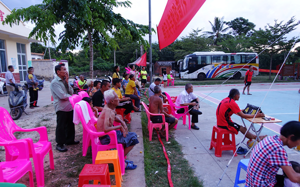 比赛吸引了当地村民的围观,大家专注观看比赛,目光被赛场上球员们出色的表现吸引,遇到精彩之处还不忘喝彩助威。
