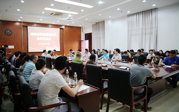 交流会开始,中组部选派来琼挂职干部、中央政策研究室党建研究局处长、海南省委政研究室咨询处处长陈珂就海南自贸重点政策知识从“什么是自由贸易港”、“为什么海南能成为中国唯一的一个自由贸易港”、“自贸贸易港可以给全中国人民和海南人民带来什么”三个方面做了交流发言。