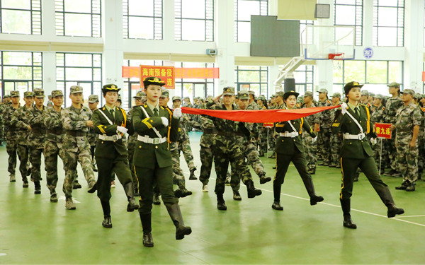 10月25日下午,我院2020级新生军训总结大会在体艺馆举行。学院副院长杨学前、文昌市武装部赵金路、各部门(系部)主要领导、全体承训官兵、参训新生参加大会。学生处处长主持大会。