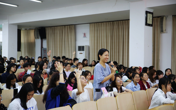 讲座开始后,陈慧敏医生围绕生殖知识展开,涵盖艾滋病、生殖健康、性病以及校内常见传染病等内容,通过互动问答的形式,解答关于艾滋病的传播、治疗、预防等一系列问题,为现场学生上了一堂生动有趣的“防艾公开课”,同学们踊跃回答提问,笑声不断,现场气氛轻松活跃。