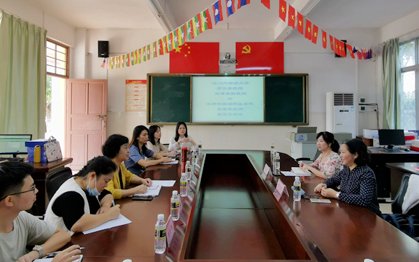 为加快推进我院东语系东盟语种各专业的建设,东语系借助本次冬季小学期活动之机,邀请了四川外国语大学东方语学院院长罗文青教授和泰语专业张倩霞副教授于11月26日下午在东语系会议室召开了主题为“教学与科研”的专题座谈交流会。本次座谈会由东语系主任郭艳萍教授主持,东语系10个专业教师代表参加了座谈会。