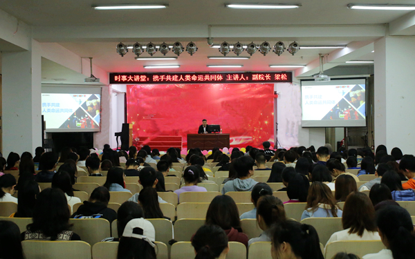 最后,梁松副院长呼吁同学们要树立全球意识和国家观念,关心国际国内形势,不断提高个人综合素质,既要善于学习国外先进文化知识,也要积极继承与弘扬中华民族传统文化,同时代共同前进,勇于担当时代赋予的历史责任,吸纳人类命运共同体理念的精髓和创新思维,用新思想新思维提升新担当、实现新作为。