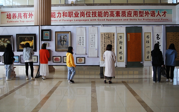 本次教职工书画展活动,得到了学院领导的高度重视和各部门、各系部的大力支持,我院工会牵头策划并开展,各系部老师积极参与其中,纷纷交出自己的得意之作——其中既具有古雅明丽的形象,又散发着现代文明气息;既表达了教职工对幸福生活的向往,又彰显出服务自贸港建设的责任担当。获奖作品展出之后,取得积极反响,师生们途经展出现场,都纷纷驻足欣赏、津津乐道。