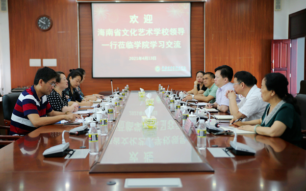 海南省文化艺术学校汪红副校长介绍了该学校办学定位、专业特色、人才培养模式等情况,同样也表达了与我院建立合作关系的希望,表示双方在今后可以共同研究拓展在深化“3+2”人才联合培养,搭建学生就业广阔平台等方面的合作,相互交流办学经验,积极推进两校更加广泛的密切合作。