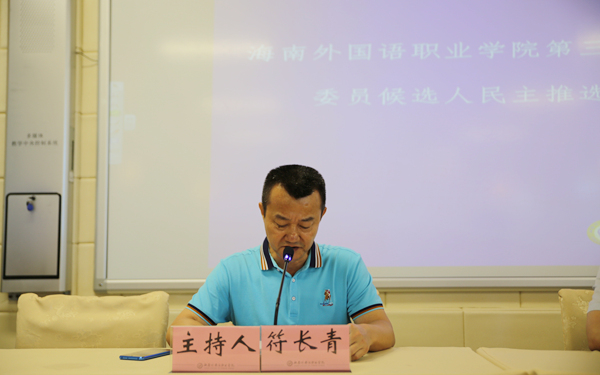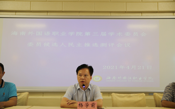 4月21日下午,我院在综合楼AE101会议室召开第三届学术委员会委员候选人民主推选测评会议。我院副院长杨学前教授,涉外职业教育研究中心主任兼科研设备处处长符长青,教务处负责人赖东明出席会议。各系部副高及以上职称教师、教研室主任(负责人)、教务处、组织人事处以及科研设备处相关工作人员参加会议。会议由涉外职业教育研究中心主任兼科研设备处处长符长青主持。