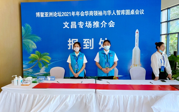 我院英语系学生为博鳌亚洲论坛2021年年会华商领袖与华人智库圆桌会议·文昌专场推介会提供志愿服务