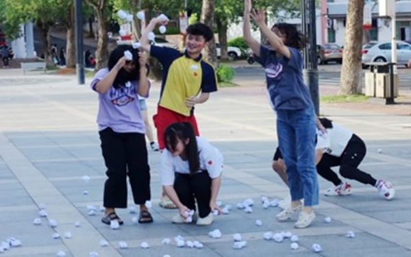 游戏给学生们带来了愉悦的心情,释放了自身压力。人多足少,同学们用尽浑身解数,在仅有的空间中站稳脚步;不倒森林,每个人相互配合,抓住队友的棒子立住不倒;大混战,齐心协力抵御外部力量,抓紧机会奋力反击;踩气球,写下自己的烦恼,让它跟着气球的爆破声随风飘散。