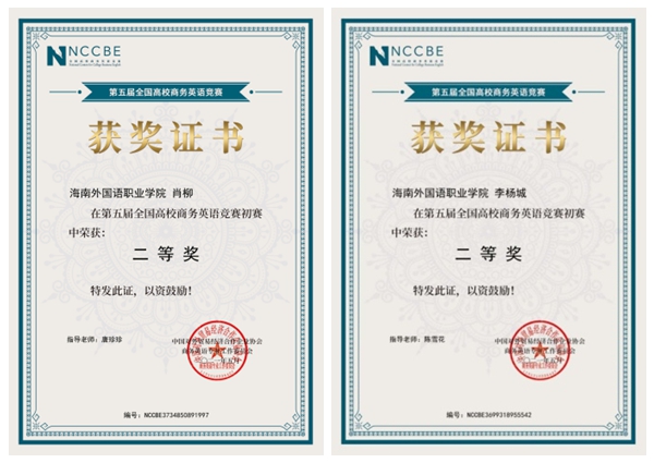 近日,2021年第五届全国高校商务英语竞赛圆满结束。本次竞赛由中国对外贸易经济合作企业协会商务英语专业工作委员会主办,1700余所院校参赛,初赛参赛选手多达26080人,决赛选手共计10100人。我院国际商务系共计48名学生通过线上的形式参加初赛,其中8名选手从众多选手中脱颖而出获得二、三等奖,并晋级决赛。