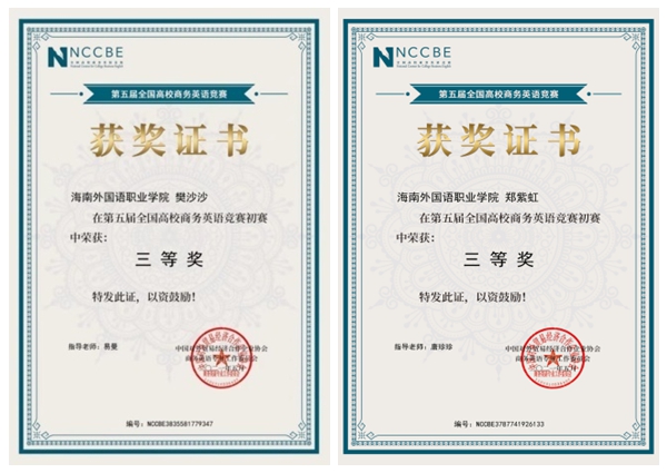 2019商务英语(外贸1)班李杨城获得决赛三等奖的好成绩。此外,在初赛中,李杨城和肖柳(2019商务英语(跨境电商))获二等奖,罗斯园(2019商务英语(外贸2))、王珠(2019商务英语(外贸2))、郑紫虹(2017商务英语(501))、王语彤(2019商务英语(跨境电商))陈子君(2019商务英语(外贸2))和樊沙沙(2019商务英语(外贸1))获三等奖,为学校赢得了荣誉。我院选手获得优异成绩充分体现了我院学生较强的英语应用能力和较好的商务素养。