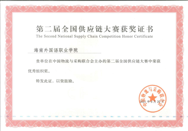 第二届全国供应链大赛“优秀组织奖”奖状