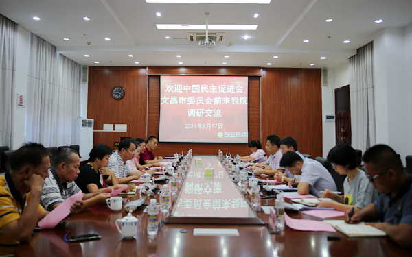 9月17日下午,中国民主促进会文昌市委员会一行来我院调研,双方在综合楼7楼第一会议室举行座谈交流。学院党委委员、副院长梁松接见来访一行并出席座谈会。中国民主促进会文昌市委员会副主委符敦岳、韩靓,委员、海外院支部副主委赖东明,海外院支部主委陈海圣,海外院支部副主委林明霞等,以及学院有关部门负责人参加座谈会。党委办公室(宣传统战部)兼国际交流中心(东盟研究中心)主任饶其康主持座谈会。