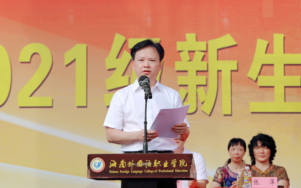 杨学前院长在致辞中向全体新同学表示衷心祝贺和热烈欢迎,并介绍了学院的历史沿革、办学理念、师资建设、专业建设、师生获奖、对外合作及服务海南自贸港建设等方面情况。他勉励同学们:要趁诗意年华,书青春华章。以“咬定青山不放松”和“积土而为山,积水而为海”的拼搏精神,坚定“天生我材必有用”的决心,在最宝贵的大学年华释放青春激情,书写无愧于时代的青春华章;要立鸿鹄之志,做有为青年。修身立德,志存高远,坚定理想信念,树立远大抱负,争做有为青年,在实现中华民族伟大复兴的新征程上奋力奏响“请党放心,强国有我”的时代强音;要借时代之力,扬青春之帆。勇于抓住时代机遇,坚决扛起历史担当,不负时代,不负韶华,扬鞭奋蹄,将个人发展融入到国家和民族发展的历史洪流中,让青春之花在海南自贸港建设的时代潮流中绚丽绽放。