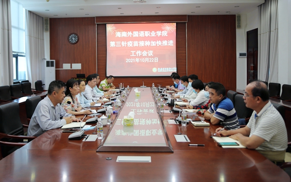 10月22日下午,我院在综合楼七楼会议室(一)召开校园安全专项整顿暨第三针新冠疫苗接种推进工作会议,学院党委书记佴建乔,党委副书记、院长杨学前,党委副书记黄丽芹,党委委员、纪委书记、省监委驻学院监察专员黄培怡,党委委员、副院长梁松出席会议。有关部门、各系部负责人参加会议。