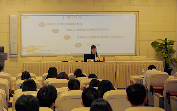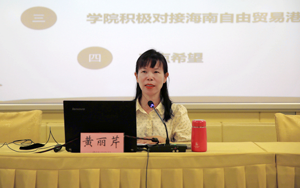 黄丽芹副书记从海南自贸港建设、自贸港人才需求、学院积极对接自贸港建设等方面,立足海南自贸港发展大局,对当前发展形势进行解读与分析,鼓励同学们勤学勤练,积极进取,努力成为社会主义事业的生力军和海南自由贸易港建设的见证者、参与者。