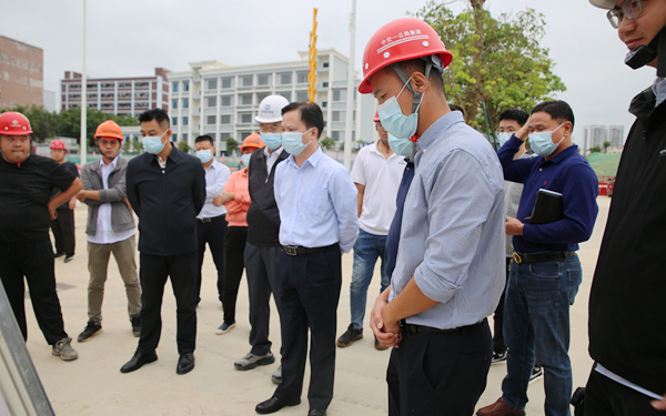 在建设现场,学院领导一行详细查看了工程现场情况,听取了南苑学生公寓新建工程项目进度、施工管理和相关工作汇报。杨学前院长强调,新建南苑学生公寓工程是关系学院建设与发展的重大项目,备受师生和社会关注,在工程建设进入攻坚阶段的关键时刻,各方要加强时间观念,增强质量观念,提高协作观念,尽职尽责,通力协作,及时协调解决工程建设中遇到的问题,在保证工程质量和安全的前提下加快施工进度,确保学生如期顺利入住。
