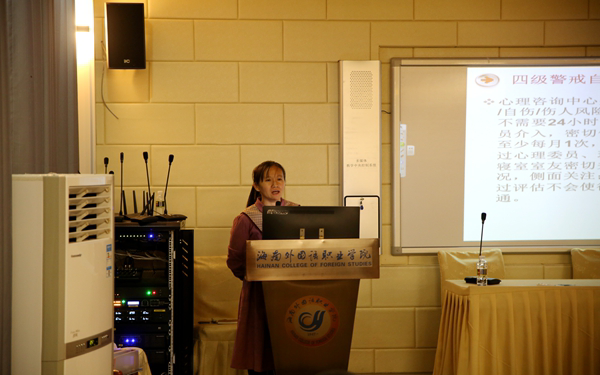 讲座上,王海燕老师给大家介绍了危机干预的层级与要点以及六种大学生常见的心理问题,以清晰明了的话语对心理问题进行一一剖析,结合自身丰富的个案咨询经验和最新心理学临床理论,为辅导员与班主任提供了如何正确识别学生出现的心理问题以及干预学生危机事件的措施。王海燕老师指出,一旦学生出现心理危机事件,立即启动我院危机干预方案,及时上报,同时监护和确保学生的安全。